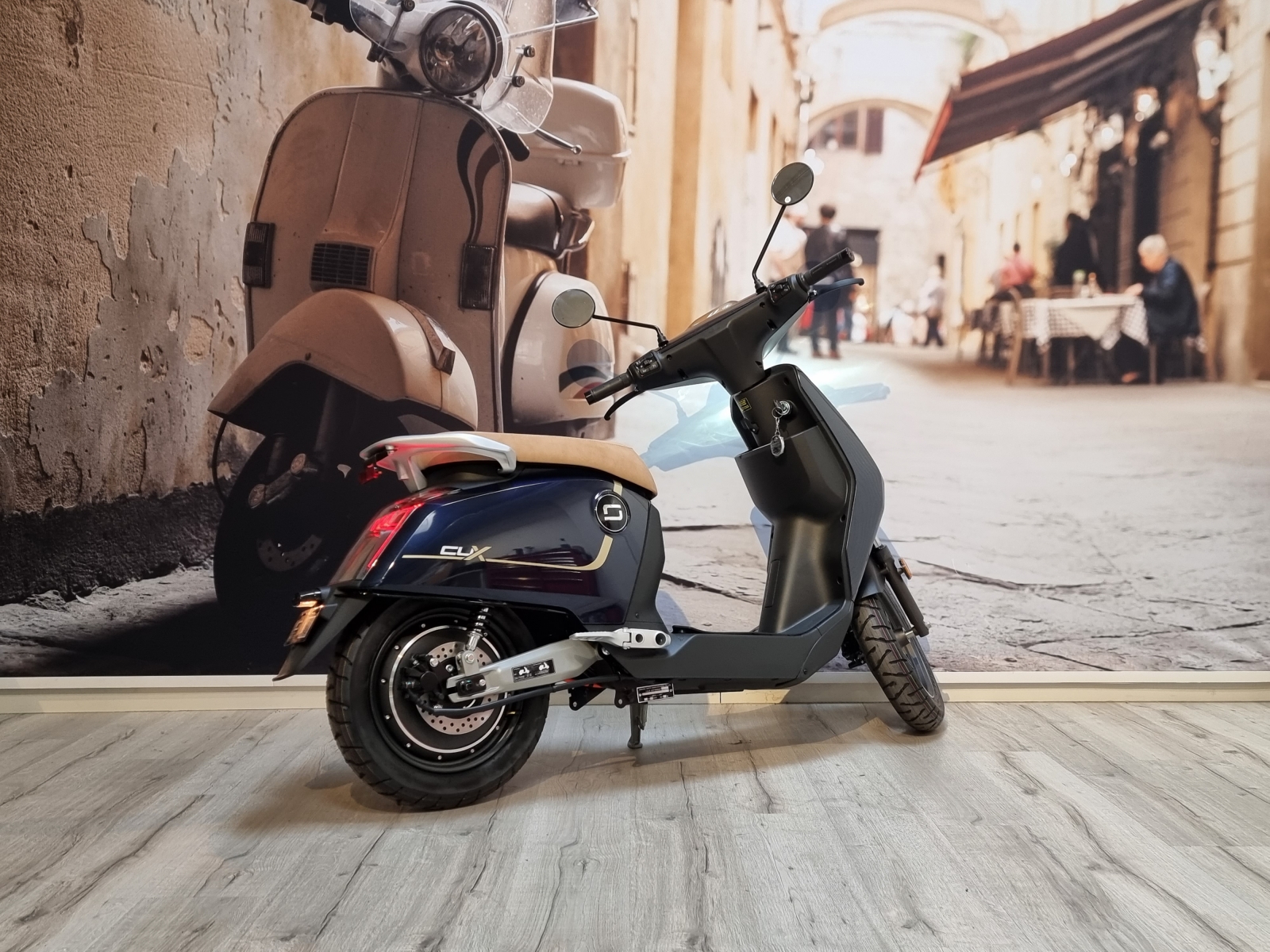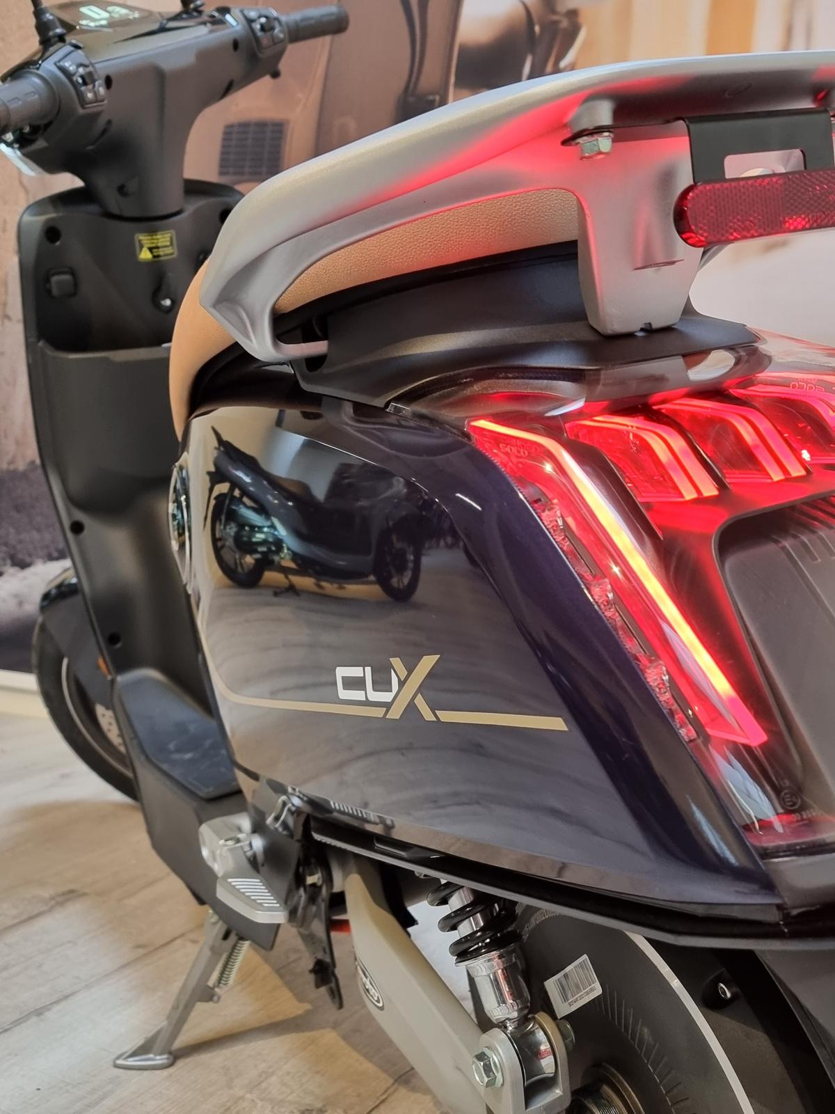 Met deze nieuwe e-scooter val je zeker op! Heel veel technologie in een enorm compact pakketje. De CU-X heeft geen overtollig vet, en dat merk je eens je onderweg bent. Deze vlotte 45km/u scooter is ideaal voor het dagelijkse woon-werk verkeer.
