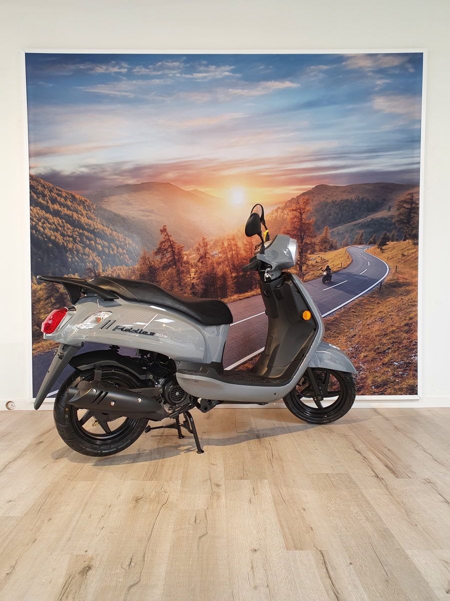 De SYM FIDDLE 2 beschikt over een krachtige 4-takt motor en comfortabel breed zadel.